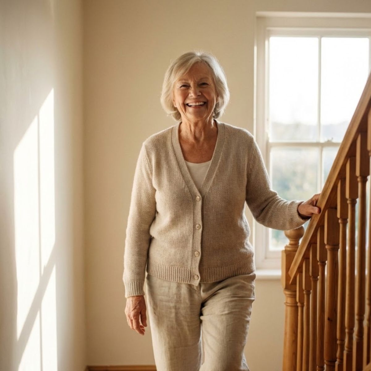 Heute trägt Monika die Kompressionsstrümpfe jeden Tag – und ihre Beine fühlen sich endlich wieder leicht, sicher und beweglich an.
